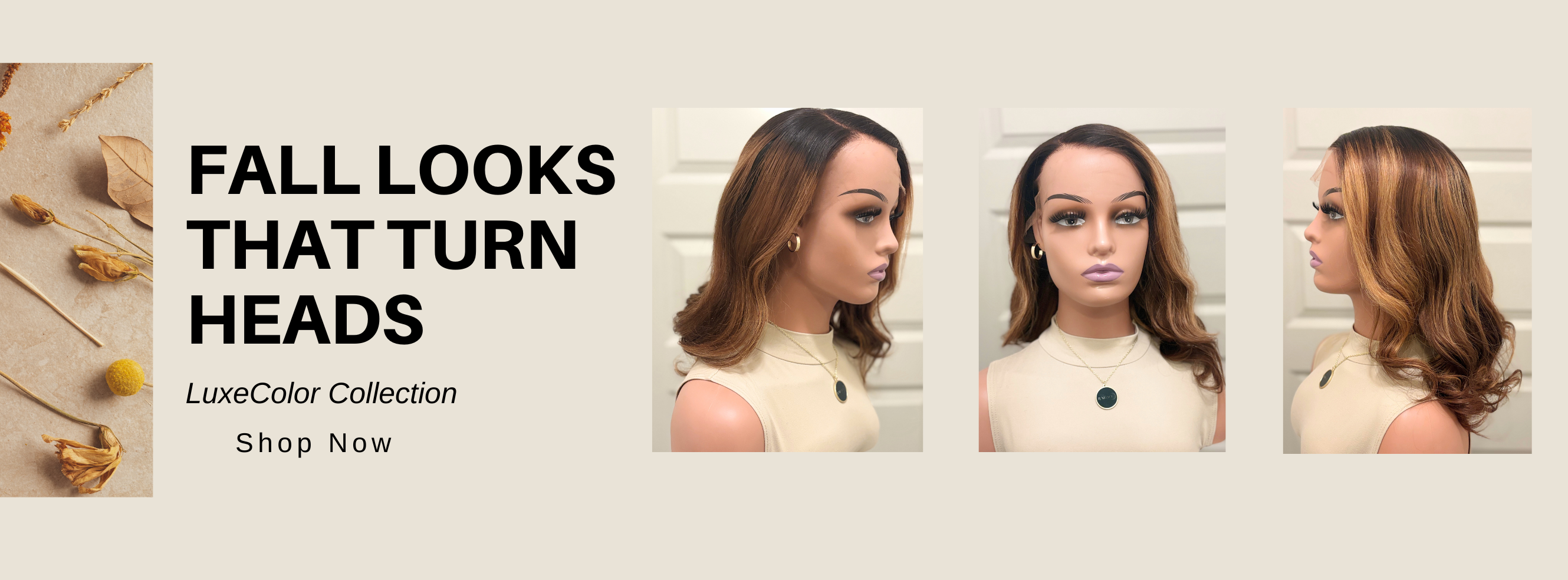 We offer a range of luxury wigs, including straight, curly, and natural-texture wigs. Our collections include the LuxeStraight, LuxeLoose, LuxeCurls, and LuxeNatural lines, each designed to provide versatile, high-quality options for every look.